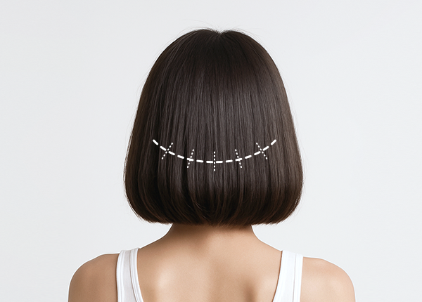 後頭部の頭皮を必要量切開し、 健康な毛包を必要部位へ移植する方法 |